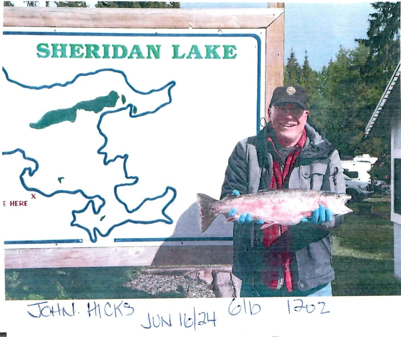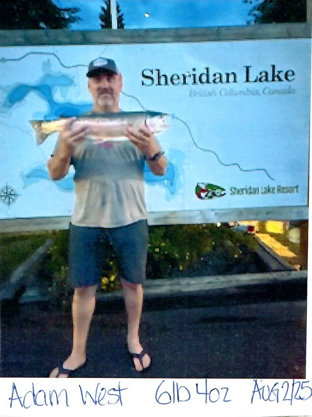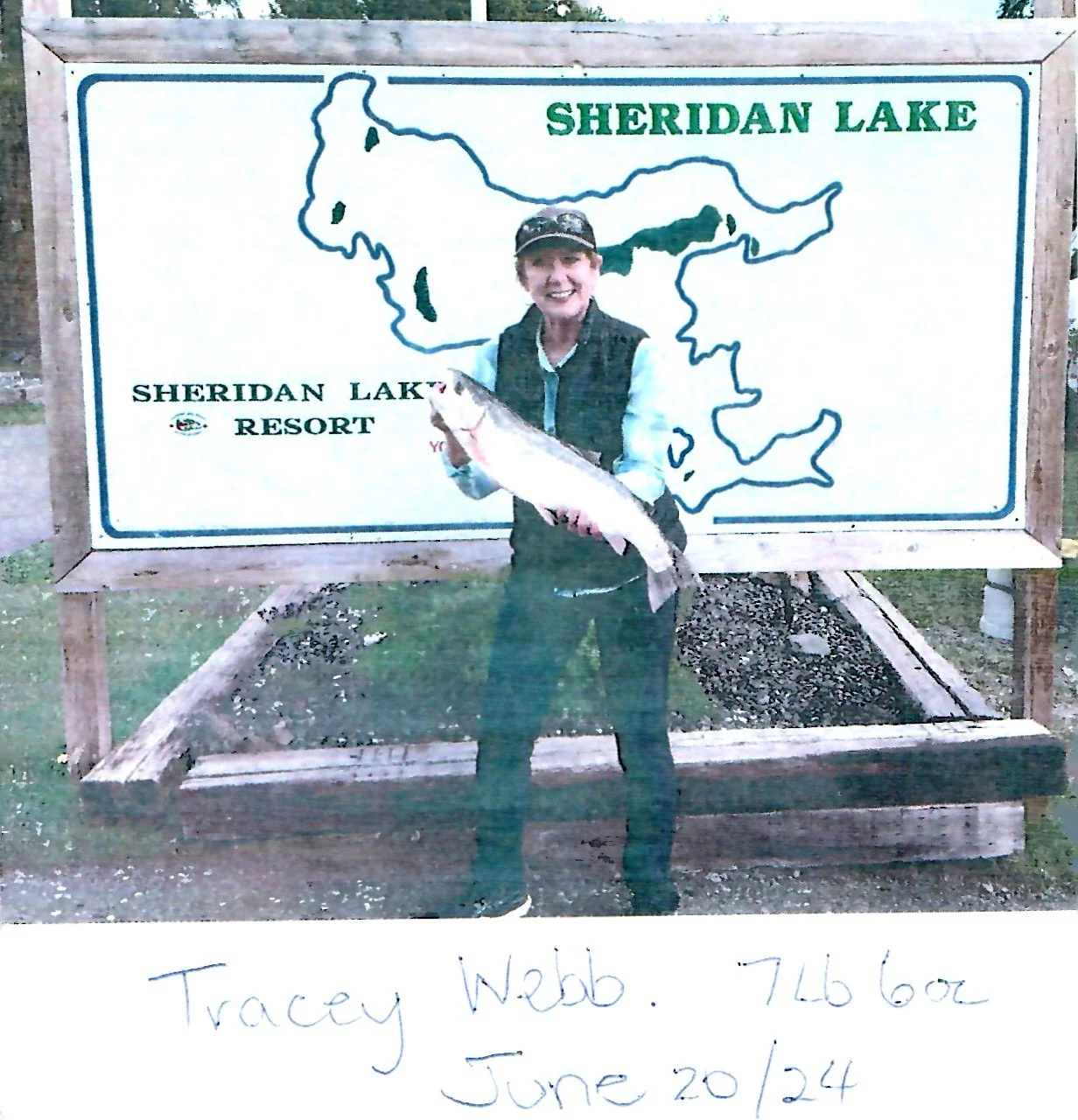 Check out our Sheridan Lake Angling Wall of Fame! You'll enjoy photos of massive rainbow trout caught on-site with sizes that often exceed 6 pounds. Pour a coffee, click the slideshow, sit back, and daydream of your next visit to Sheridan Lake. Then pick up the phone and make it a reality. We would love to post a photo of you and your monster Sheridan Lake rainbow on the wall this year!