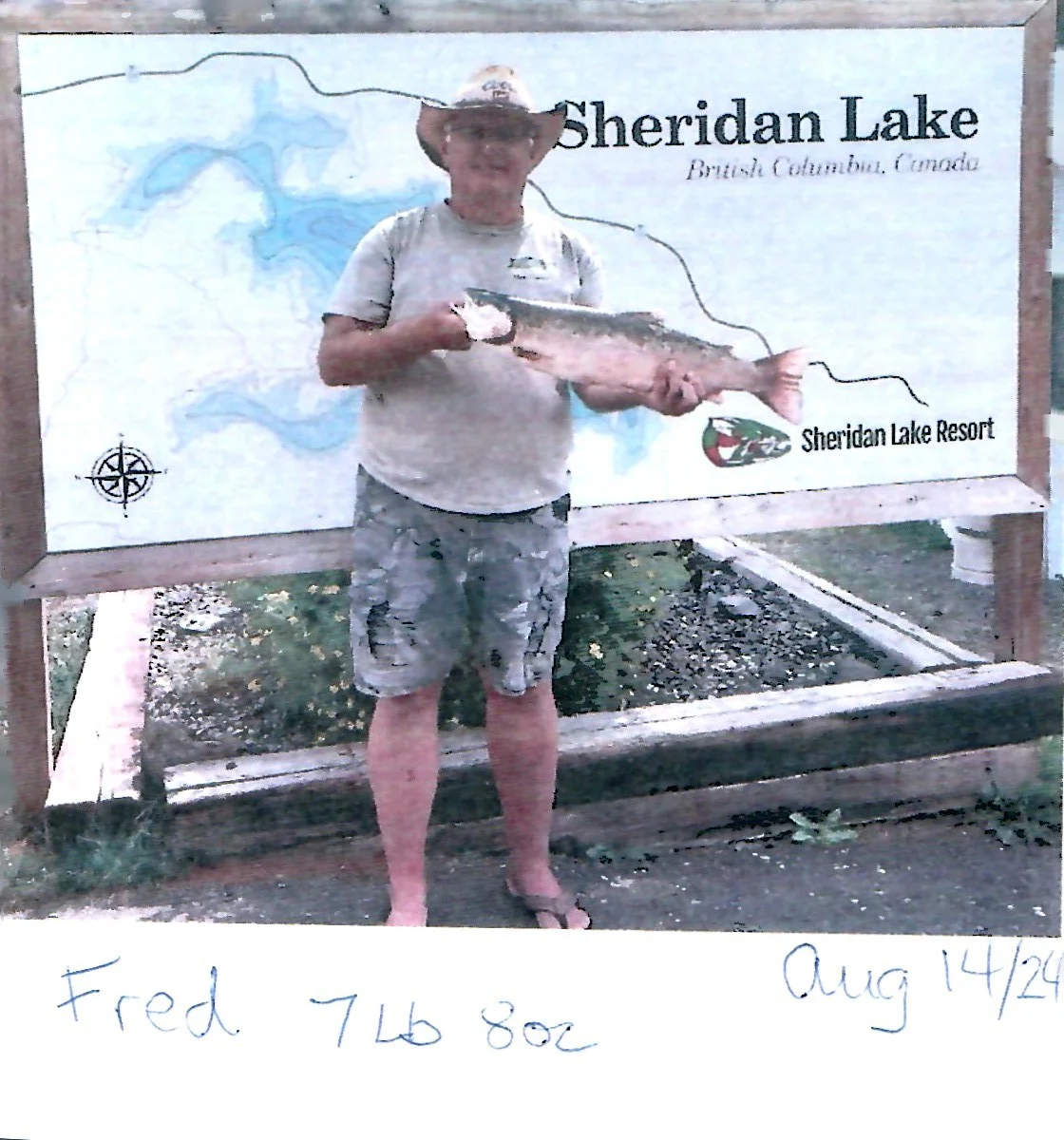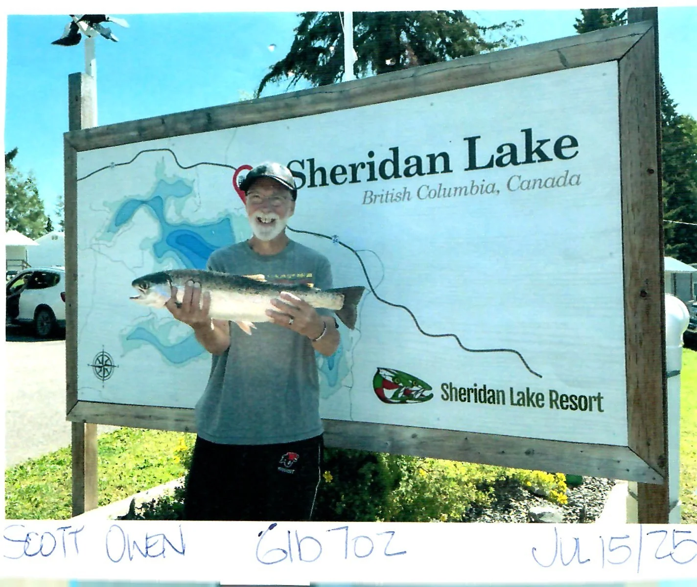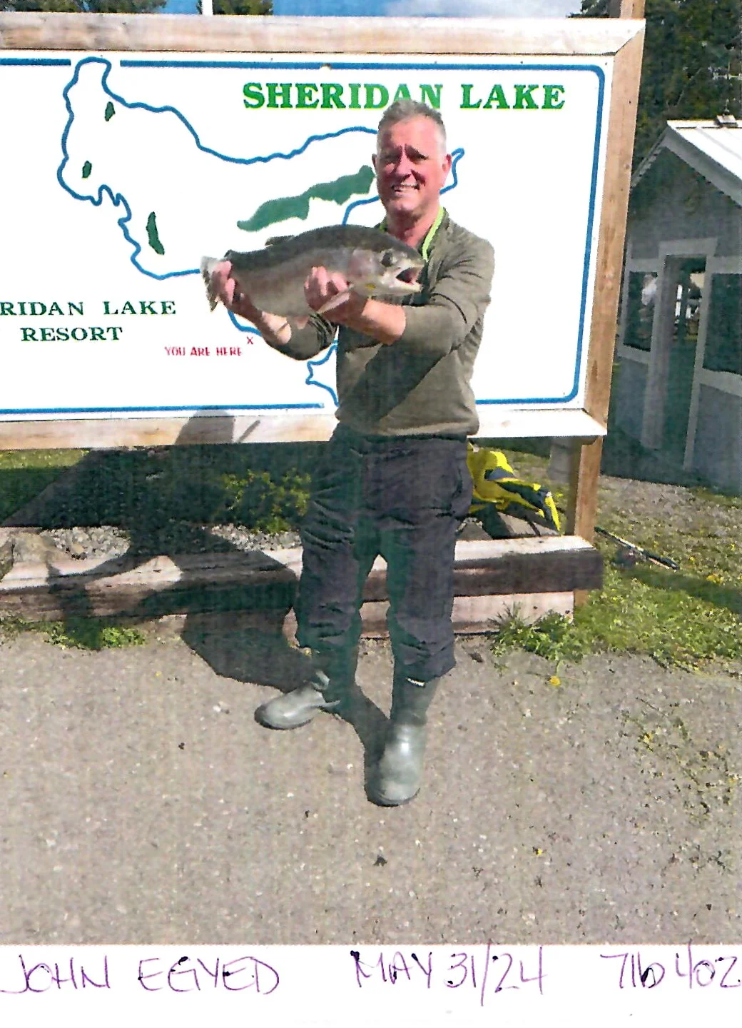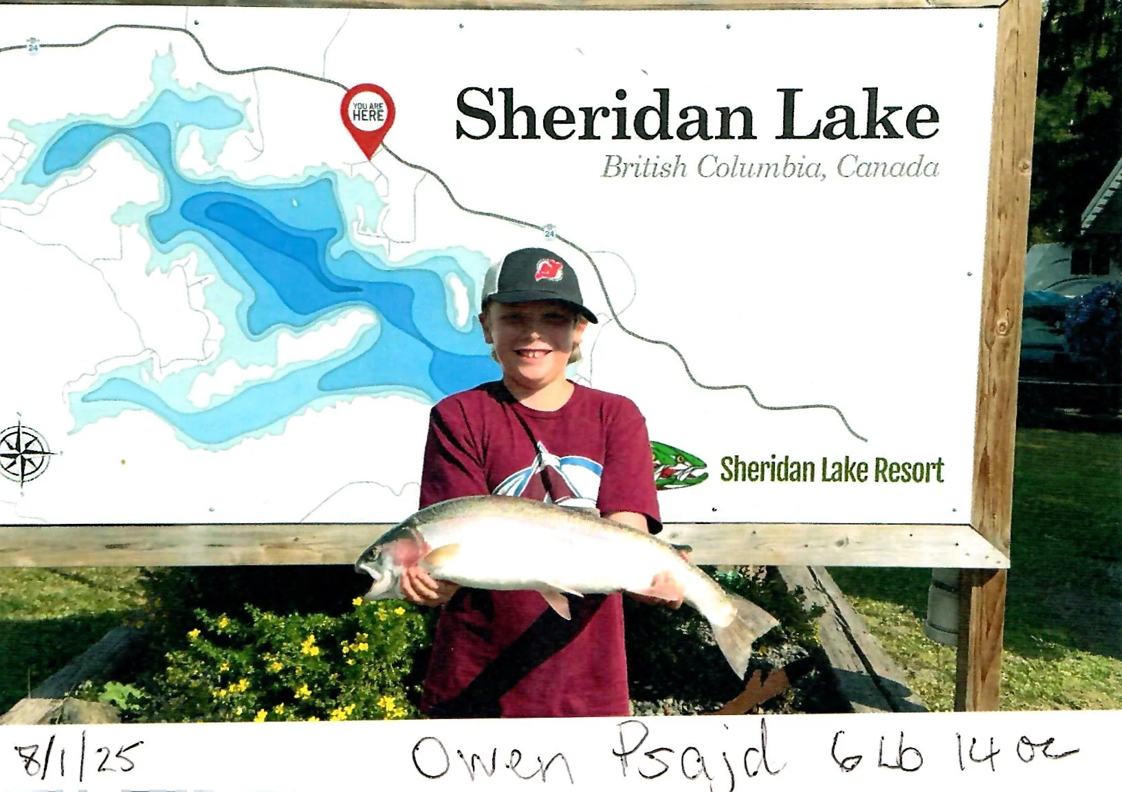 Check out our Sheridan Lake Angling Wall of Fame! You'll enjoy photos of massive rainbow trout caught on-site with sizes that often exceed 6 pounds. Pour a coffee, click the slideshow, sit back, and daydream of your next visit to Sheridan Lake. Then pick up the phone and make it a reality. We would love to post a photo of you and your monster Sheridan Lake rainbow on the wall this year!